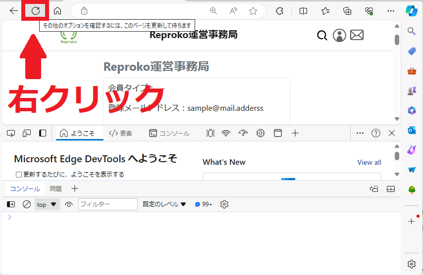 Step3. 画面左上にある更新ボタン(🔄)を【右クリック】します。